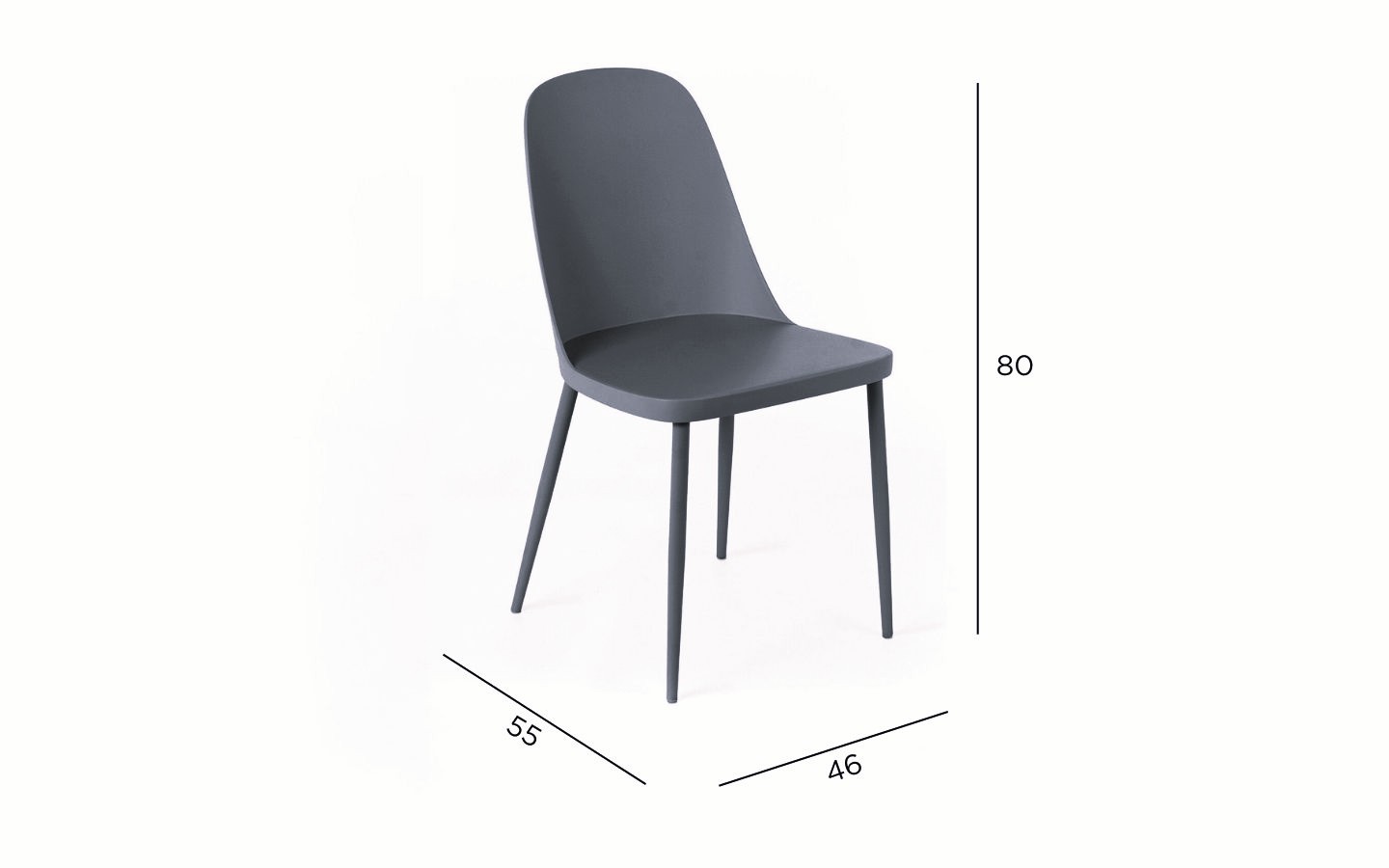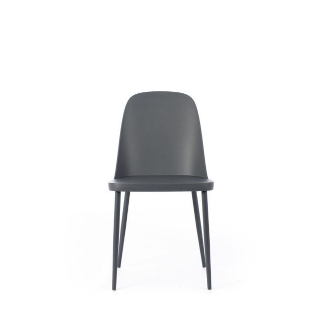 Sedia Rania Grigia, comoda e avvolgente, con seduta in polipropilene grigio con gambe in acciaio verniciato grigio.