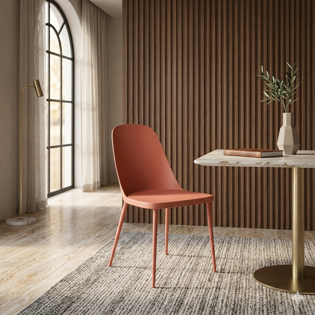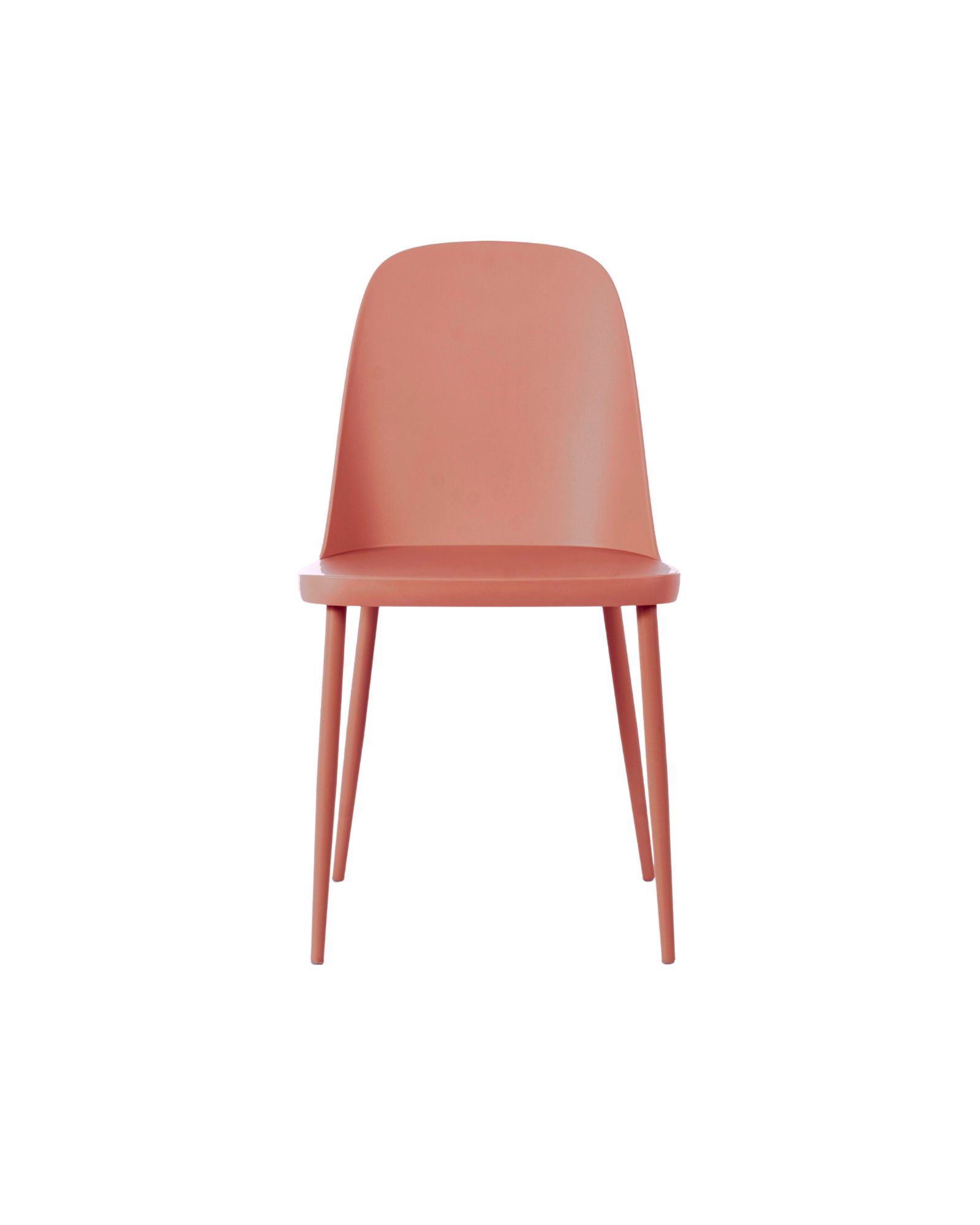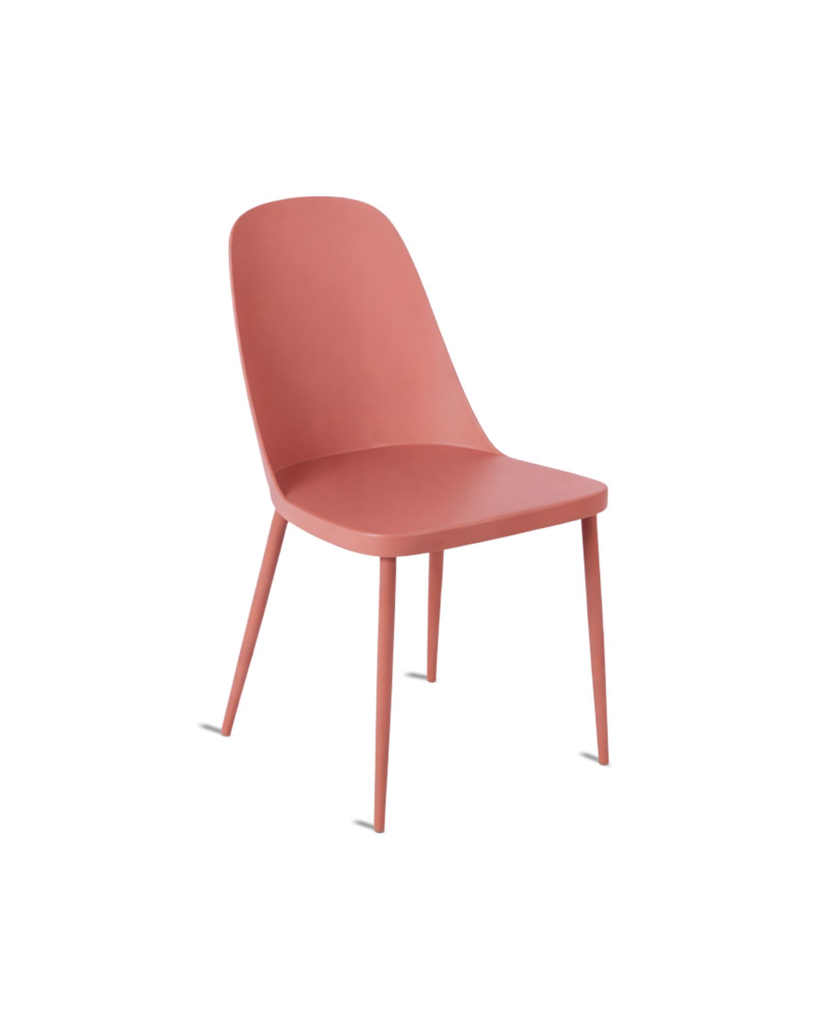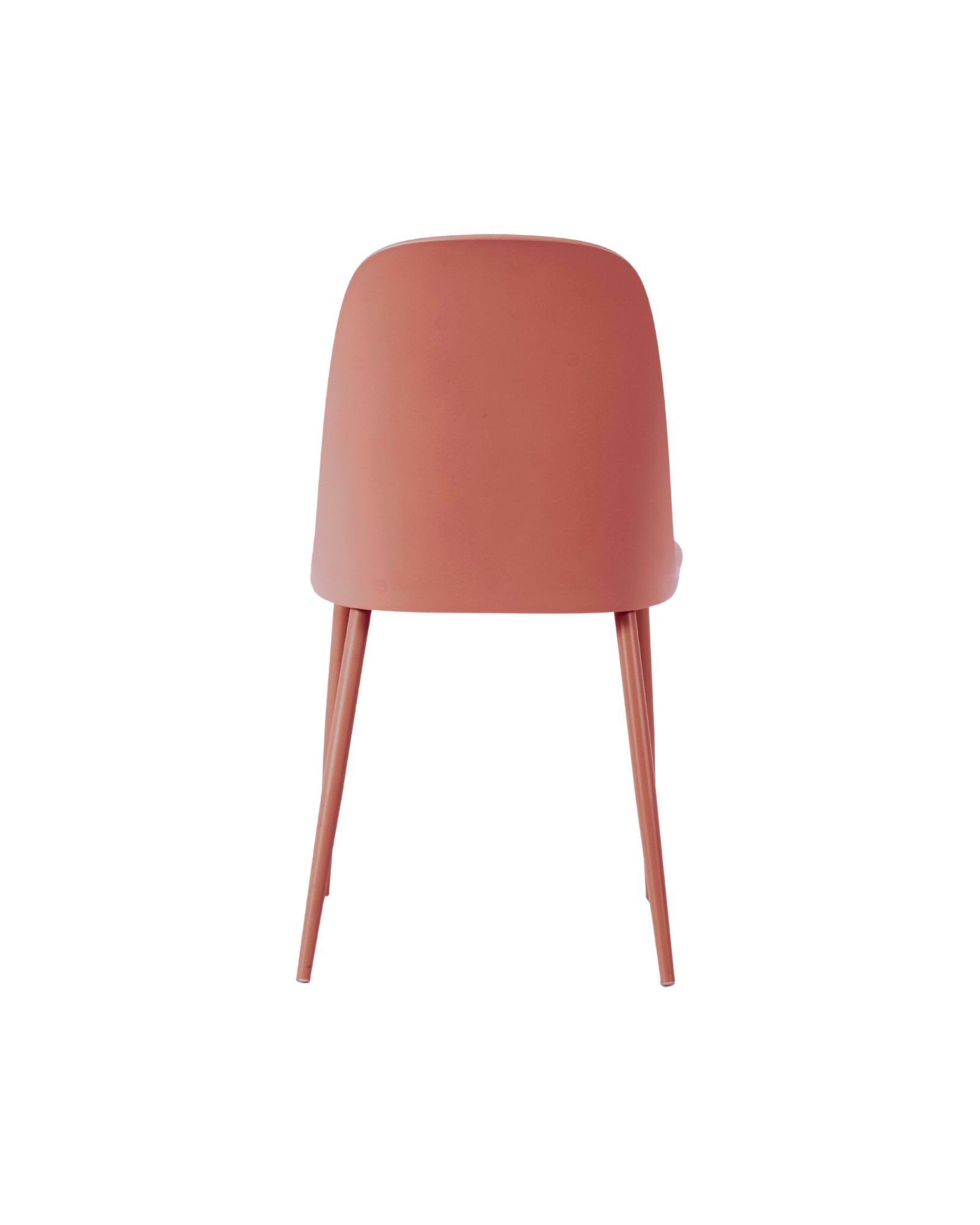 Sedia Rania Ruggine, comoda e avvolgente, con seduta in polipropilene corallo con gambe in acciaio verniciato ruggine.
